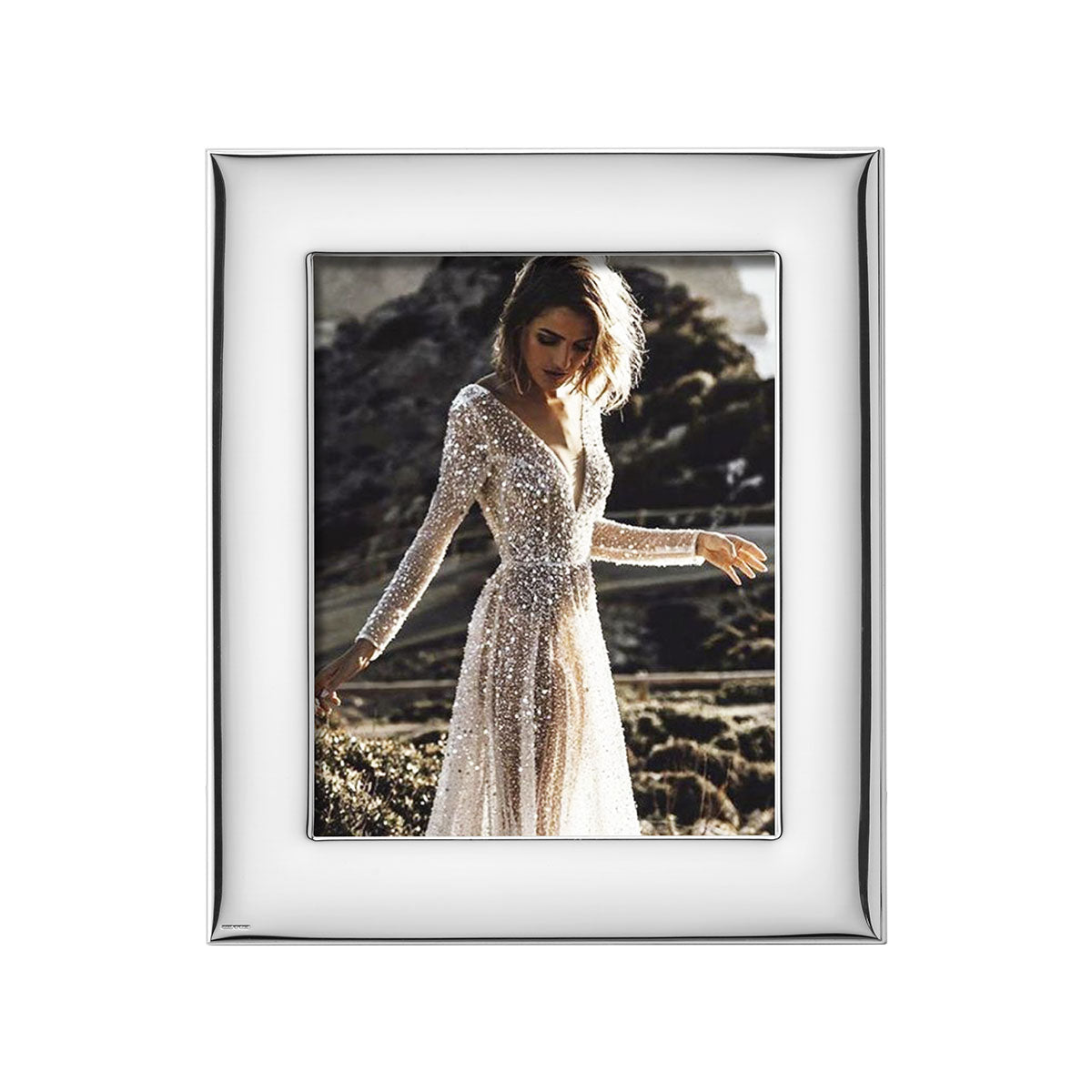 Cornice Portafoto in metallo lucidato  con retro in legno finitura bianco