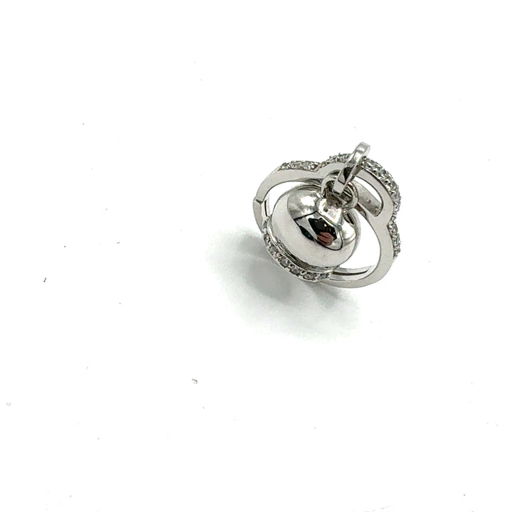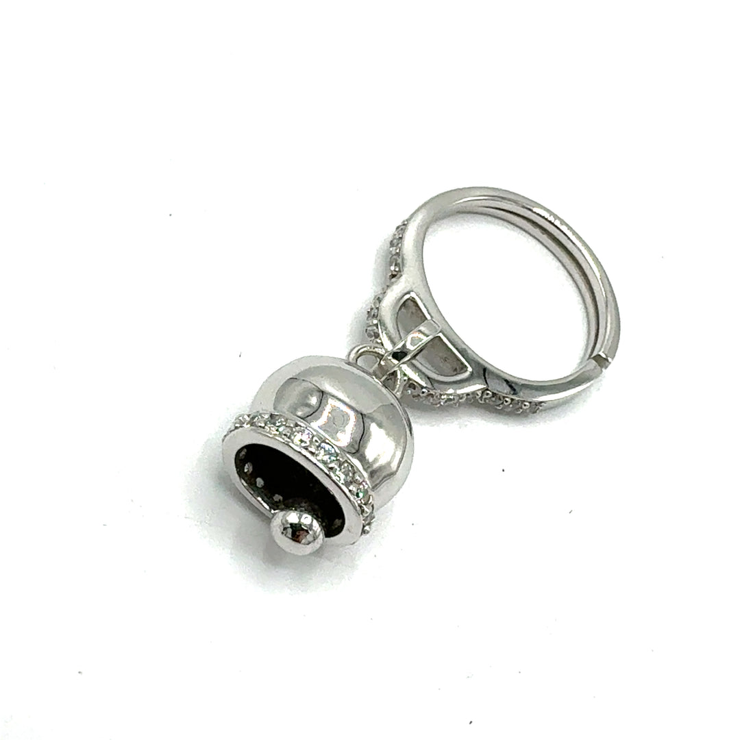 Anello in Argento 925/°° con zirconi bianchi e con pendente campanella lucida e zirconata