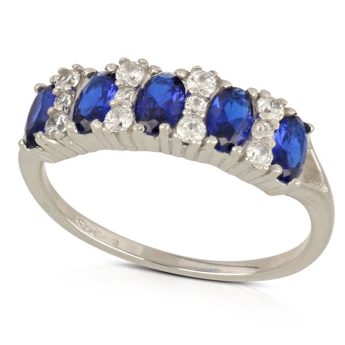 Anello Veretta Oro Bianco Zirconi Blu e Bianchi Siciliano Gioielli in