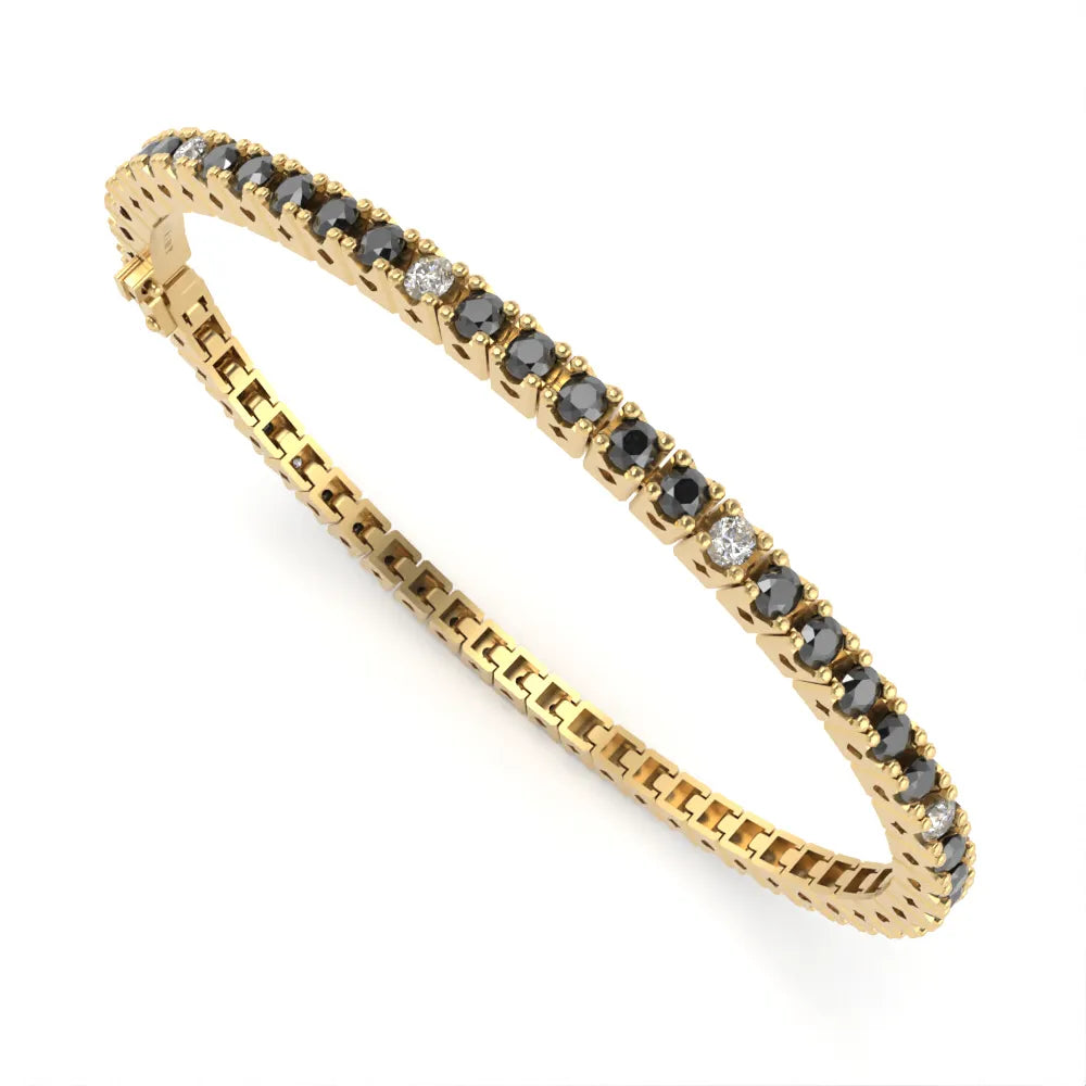 Bracciale in Argento Dorato 925 modello Tennis con Zirconi Bianchi e neri 2 mm
