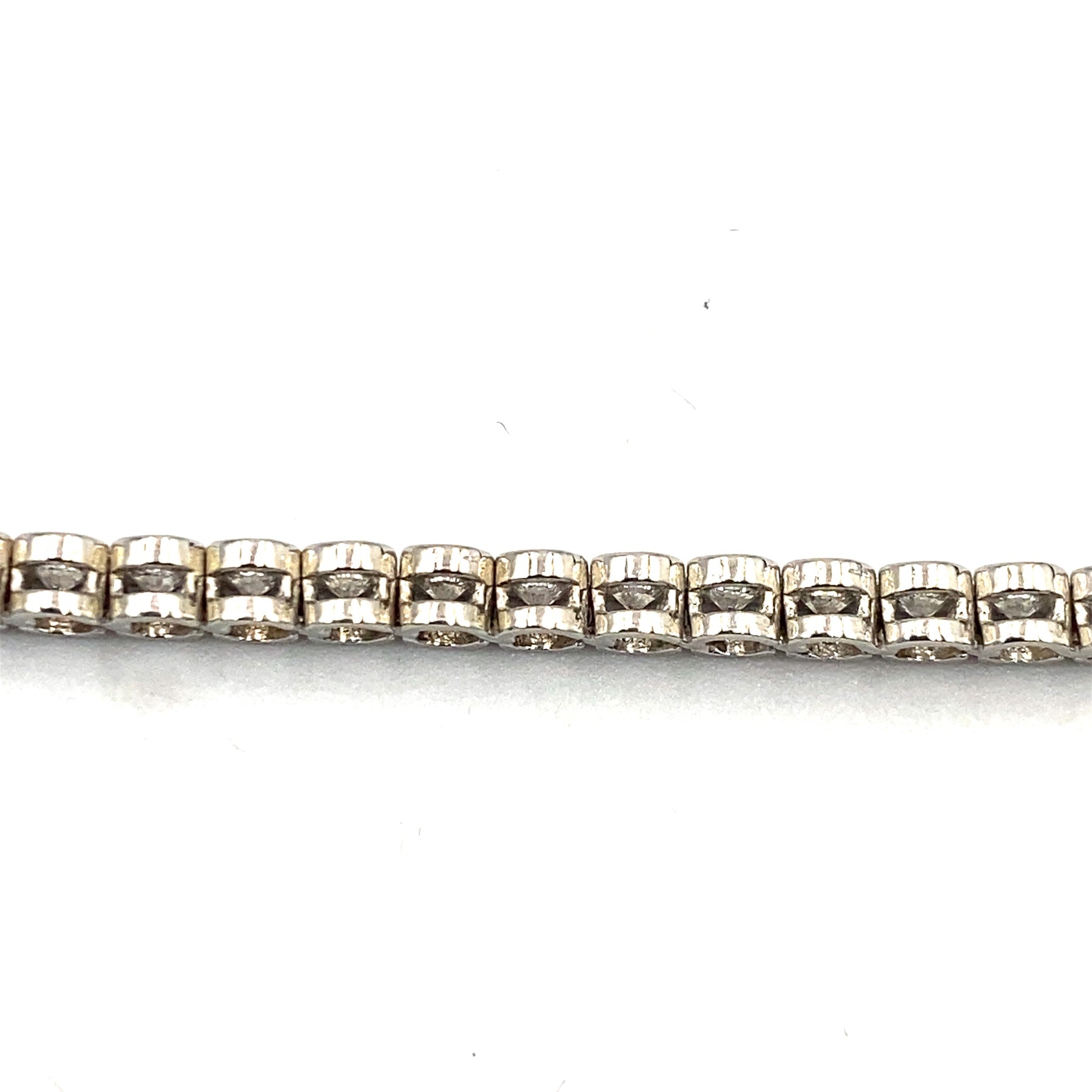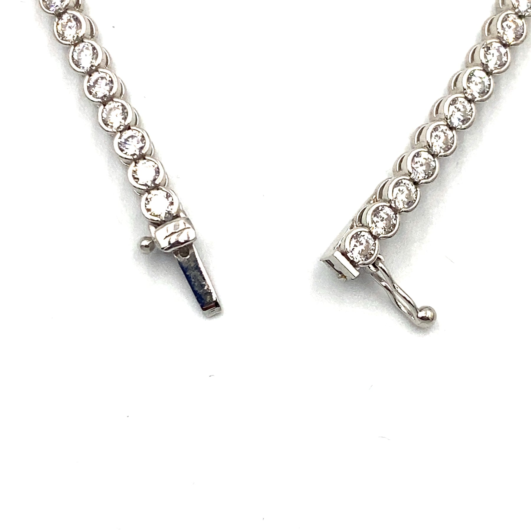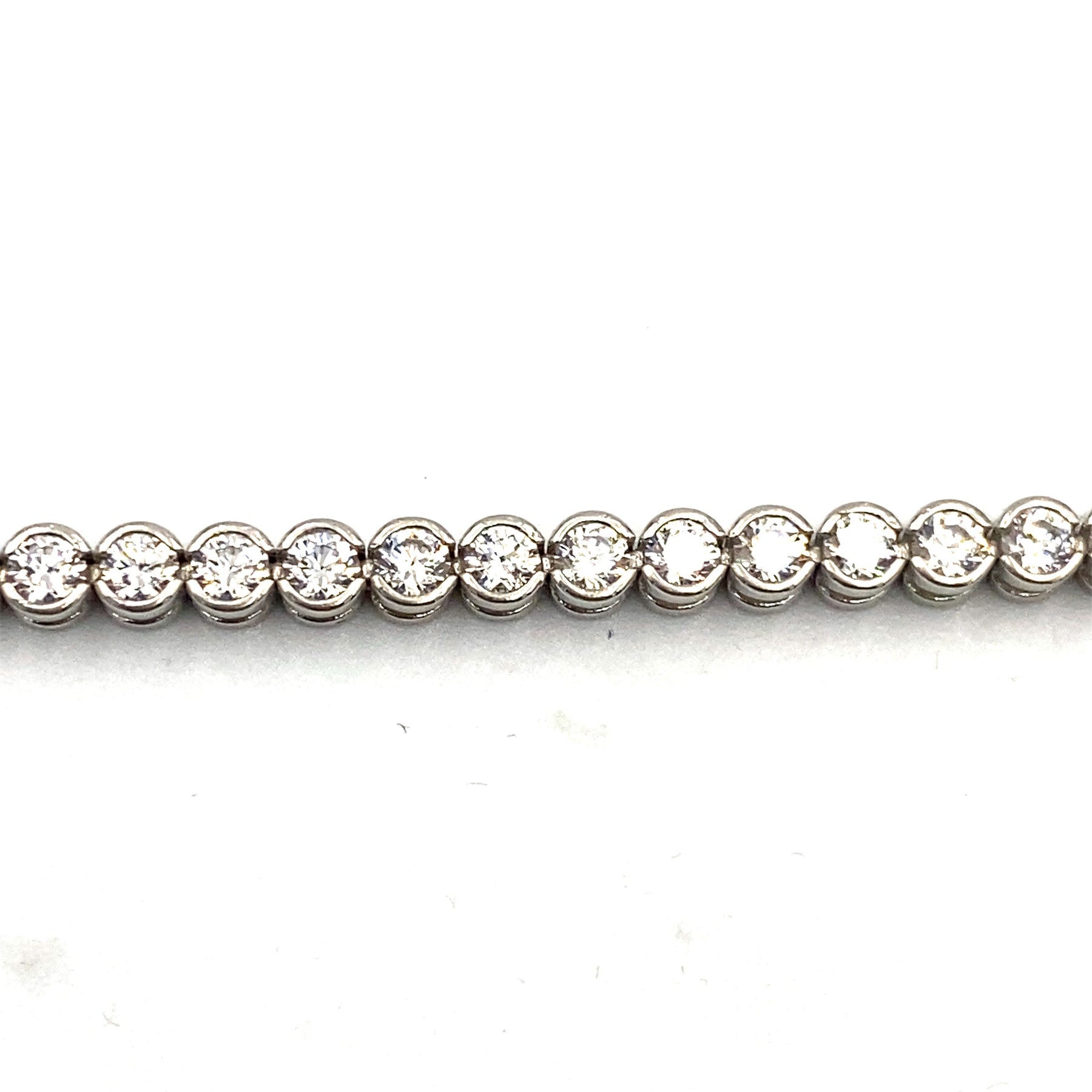 Bracciale in oro bianco 18 kt., modello tennis con castone tondo battuto,