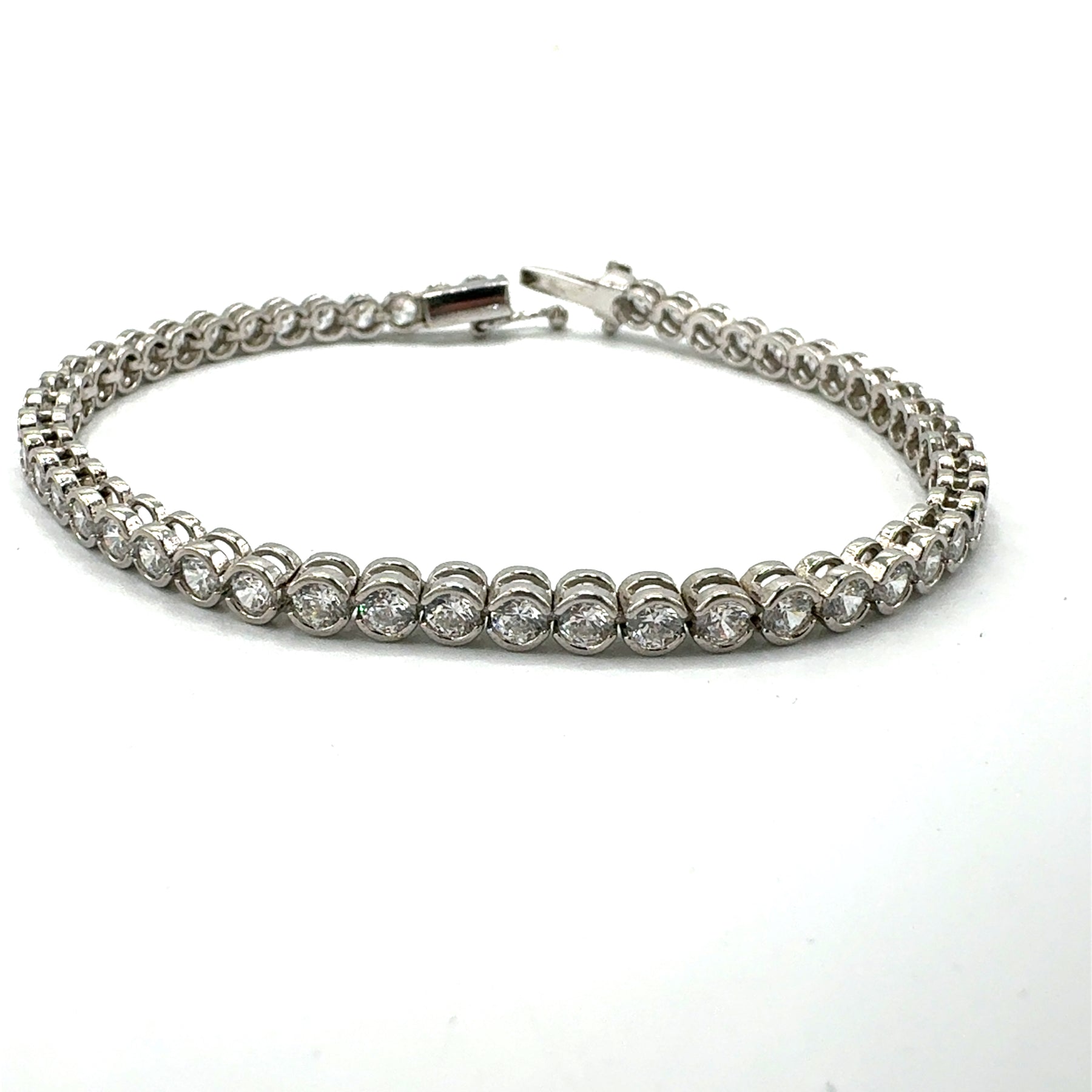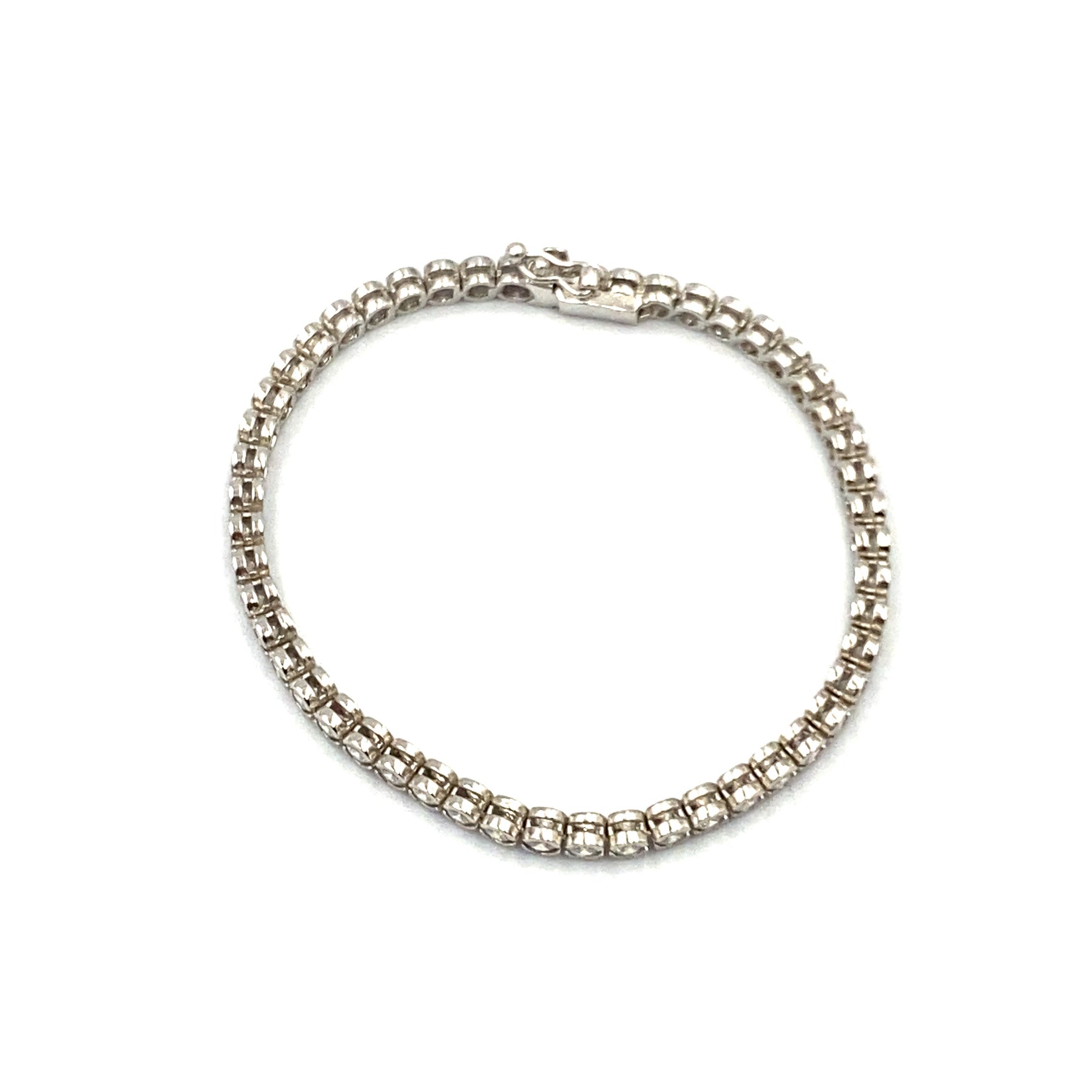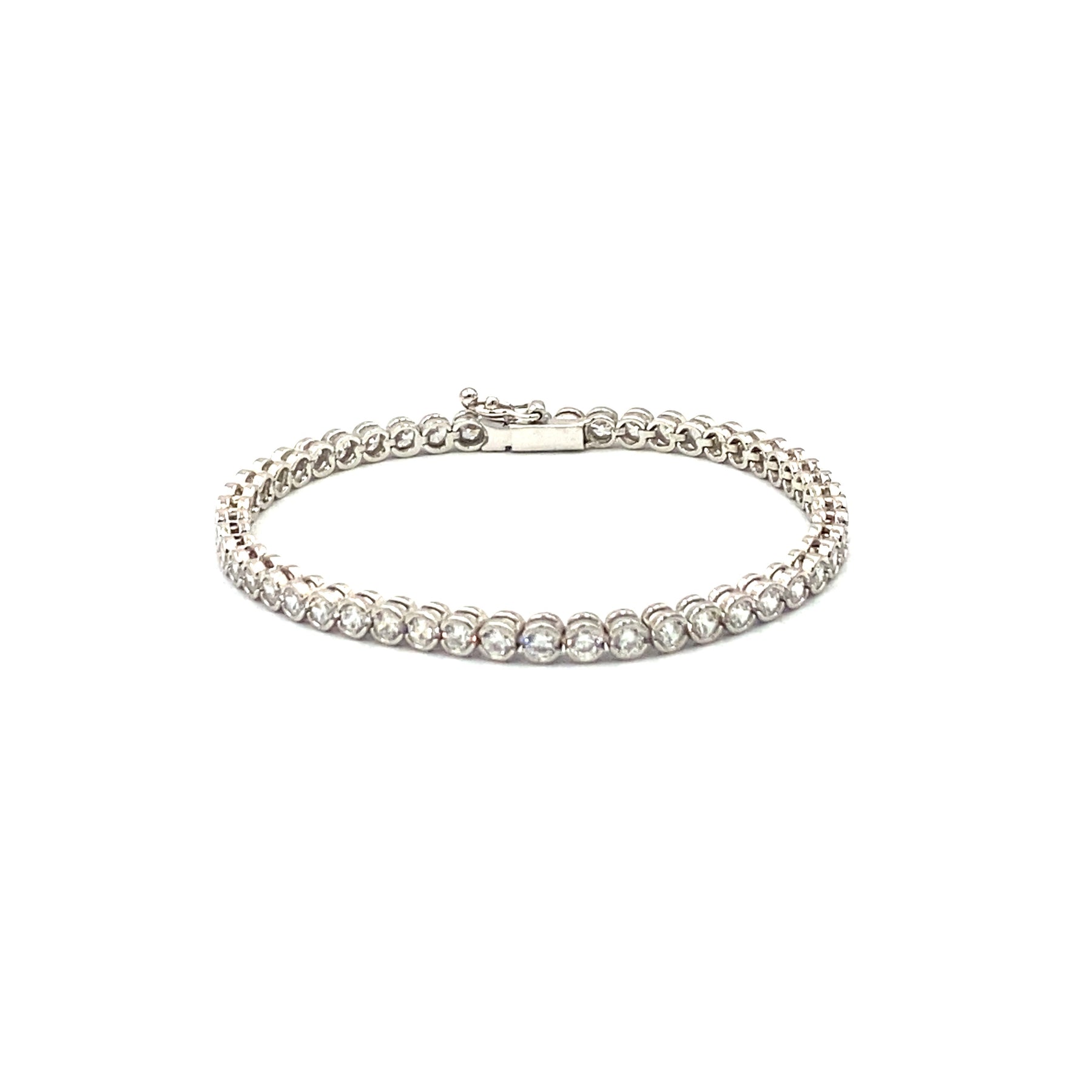 Bracciale Tennis Tondo  Oro Bianco  Zirconi 18 cm
