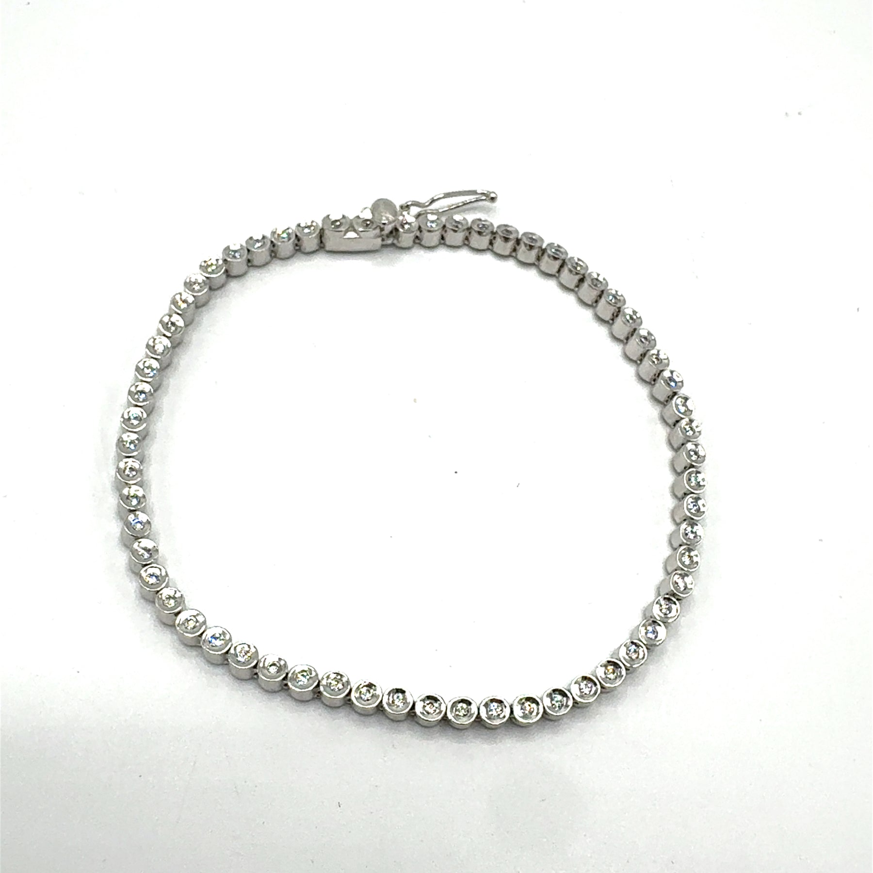 Bracciale Tennis tondo da Uomo e o da Donna , Oro Bianco 18 Kt 750, con Zirconi  Bianchi 1 mm