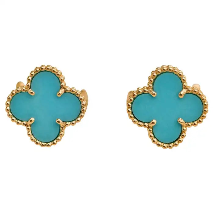 Orecchini modello Quadrifoglio con Madre Perla bianca  e o malachite verde o pasta di turchese