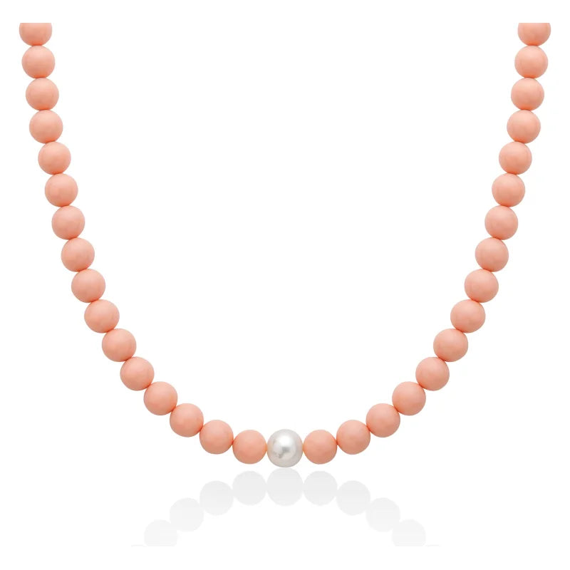 Pietre: Sfere Pasta di Corallo Rosa  da 8,5 -9  mm e perla centrale  coltivata di 9 mm.