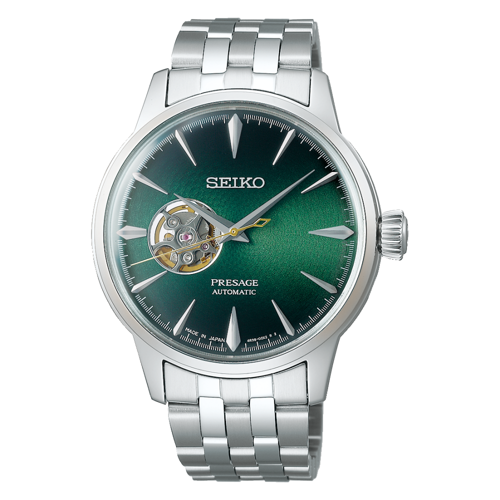 Orologi della collezione Presage alimentato da un movimento automatico di fabbricazione Seiko,che si può ammirare attraverso l'open heart a ore 9 e il fondello a vista.