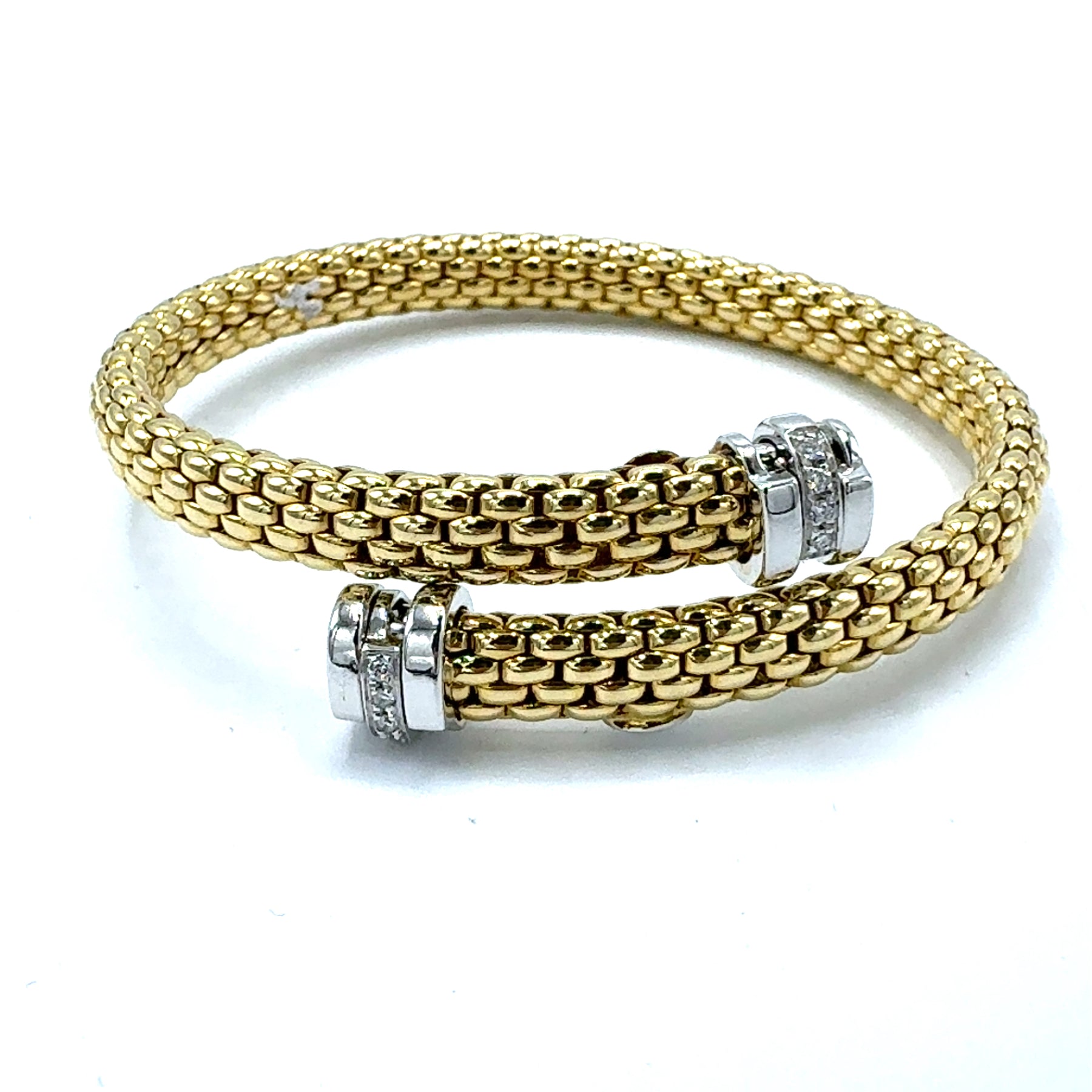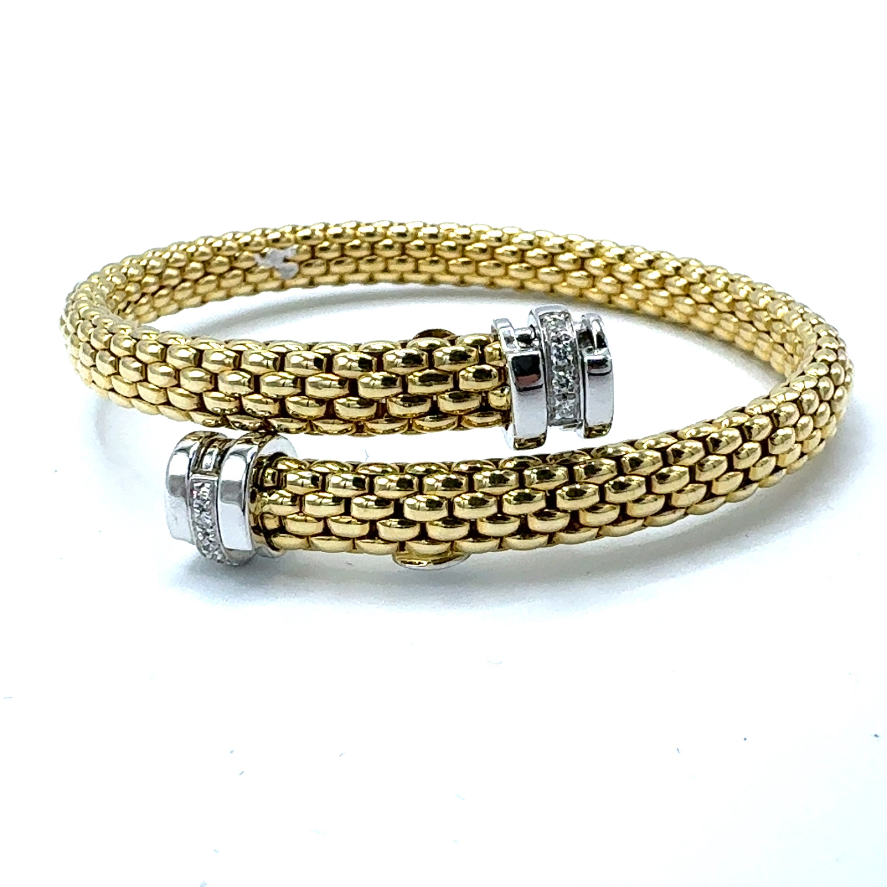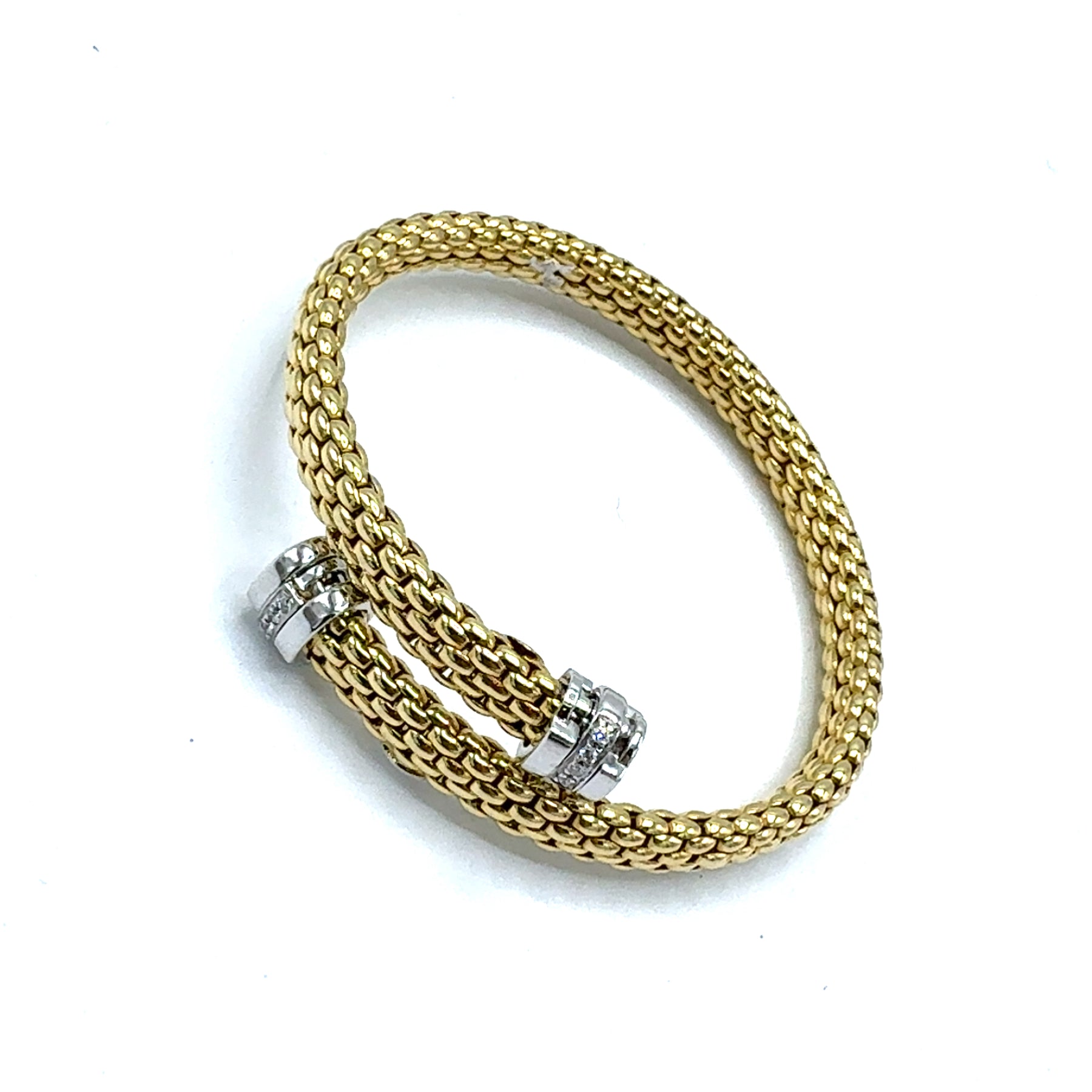 Bracciale Fope Oro Giallo 750/°° lucido con finiture in oro bianco e diamanti ct. 0,07  peso 25,00 gr
