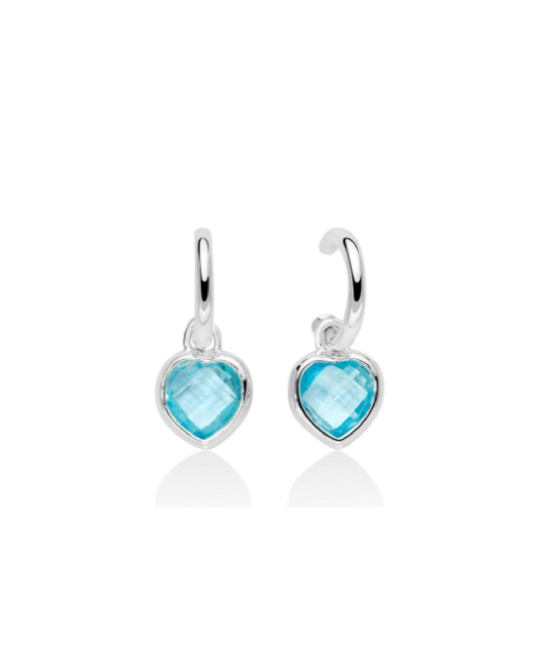 Pendant earrings from the Miluna Gemma del Cielo collection for women. Color: silver and blue. Earrings in 925‰ silver featuring a precious natural blue topaz set in a central heart-shaped pendant, 8x8 mm, 1.2 carat weight. Length: 2cm. 100% Made in Italy.