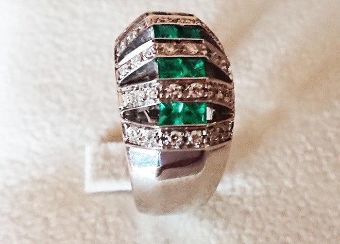 anello nimei oro bianco diamanti e smeraldi - siciliano gioielli