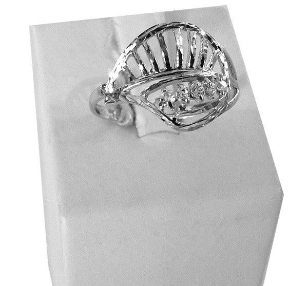 Anello fantasia in Oro Bianco 750/100  e zirconi Bianchi lavorazione traforata