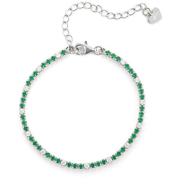 Bracciale Tennis Donna 4US Cesare Paciotti in Argento 925 con finitura rodio e cristalli verdi e bianchi di misura 2mm.
