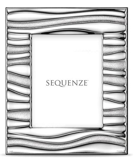 Sequenze Cornice in Argento Bilaminato a Fascia Larga Decorata di Cm 7, Retro in Legno di Colore Nero, Misura Foto Interna Cm 18 x 23,5, Esterna Cm 31 x 37,5