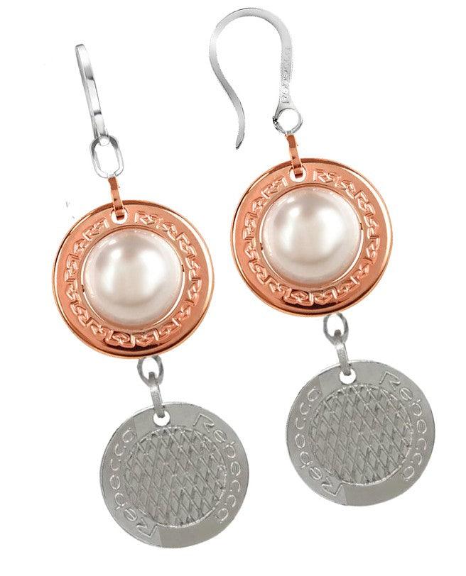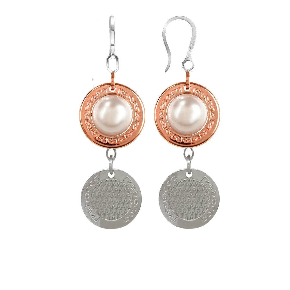 Rebecca Gioielli Orecchini Donna in Argento 925 Bicolore con Perla Rosa e Pendente con Logo Inciso