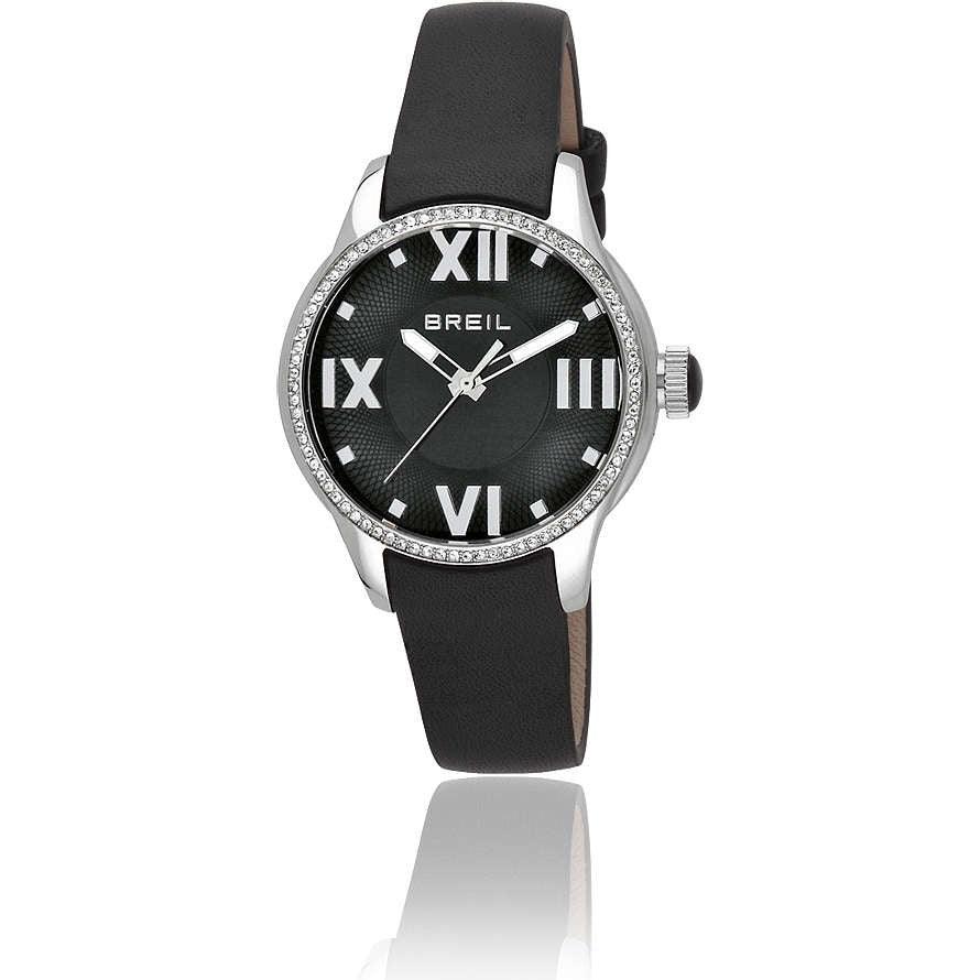 Orologio Solo Tempo Donna Breil, Collezione NEW GLOBE, Cinturino in Pelle Nero con Chiusura ad ardiglione, Cassa in Acciaio con Swarovski da 36 Mm, Movimento al Quarzo Water Resistant 10 Atm