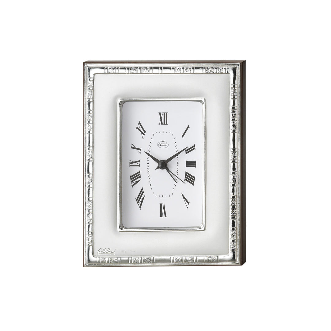 Orologio Sveglia in Lastra d’Argento 925/1000 con retro in legno finitura noce