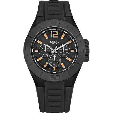Orologio Guess Multifunzione, Collezione Gamma Ray, Cassa in Acciaio Pvd Nero, Vetro Minerale, Quadrante Nero con Indici Arancione e Acciaio, W.R. 5 Atm, Cinturino in Silicone con Fibbia